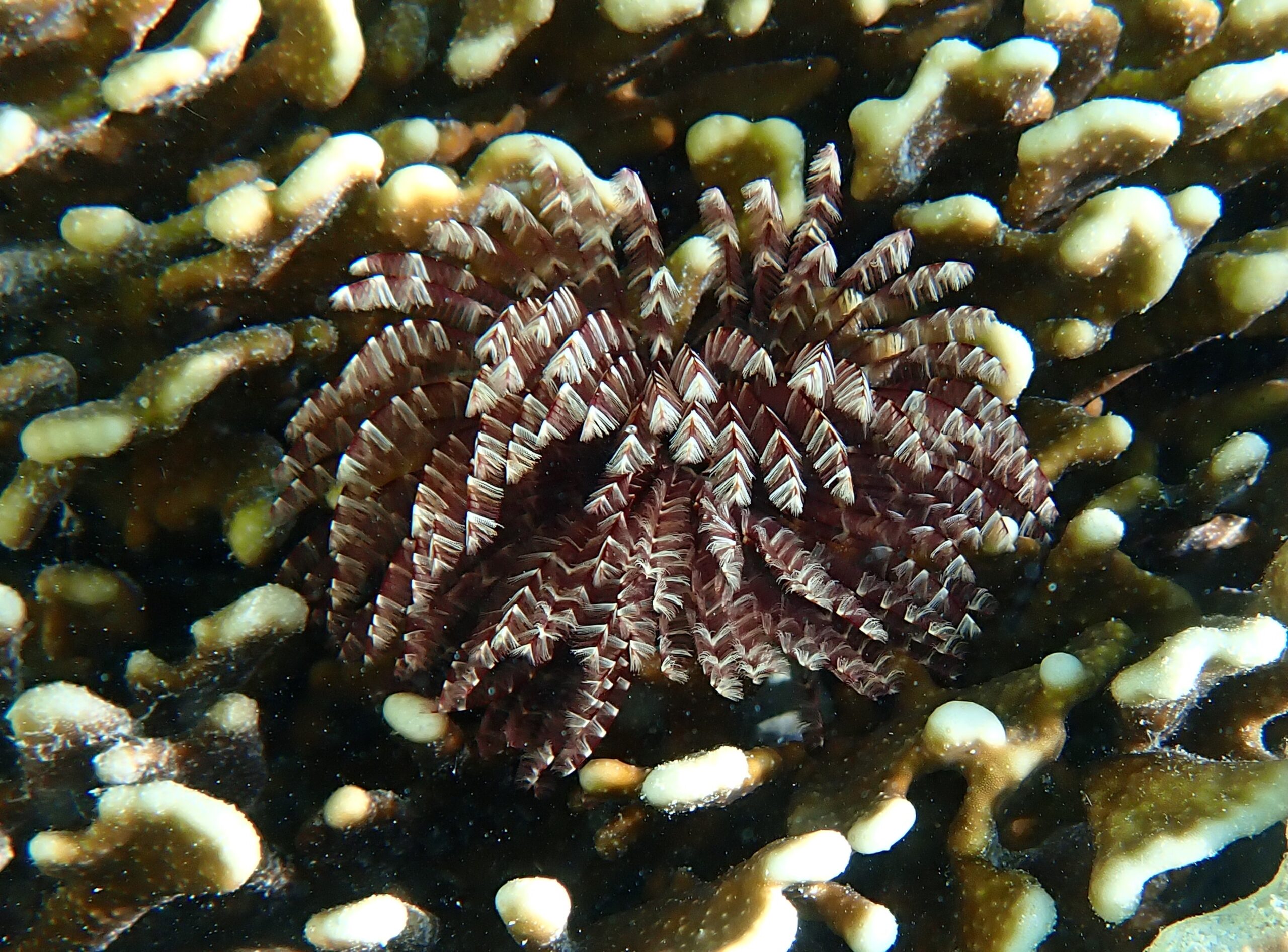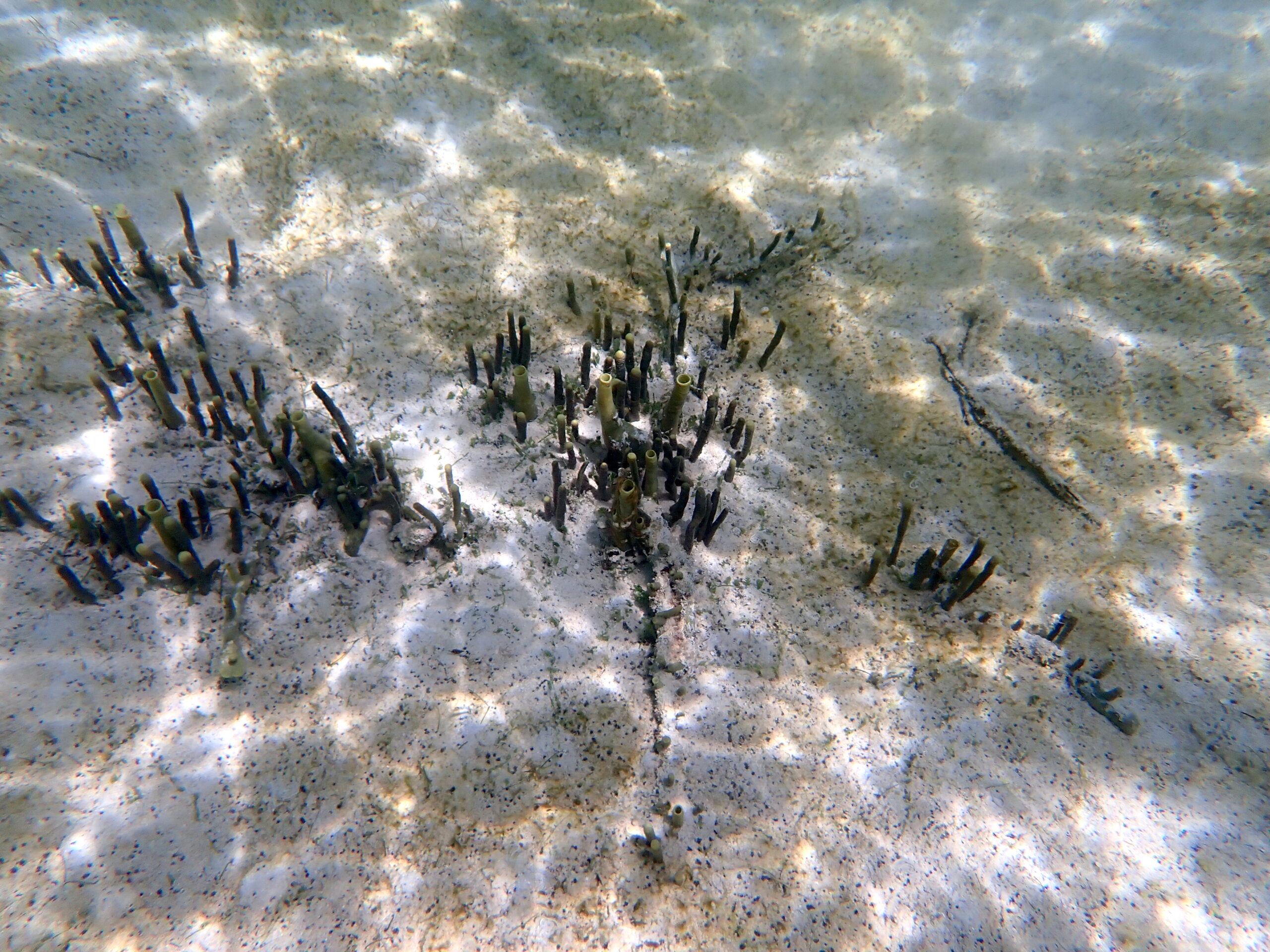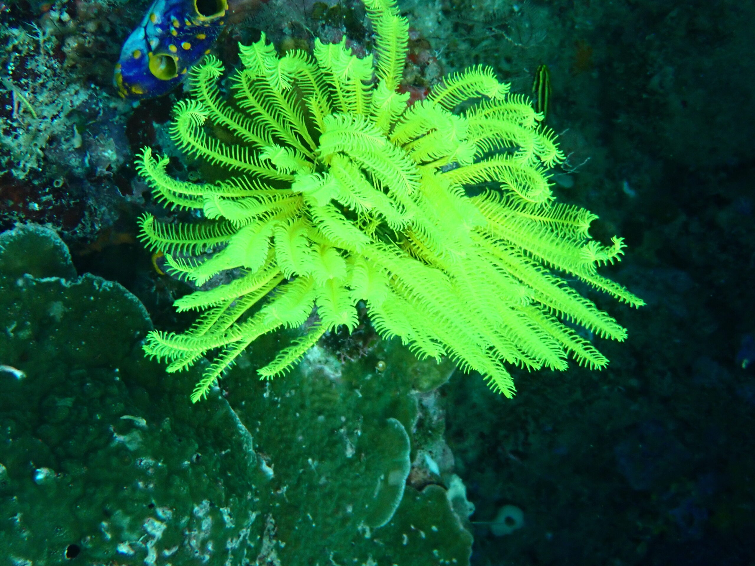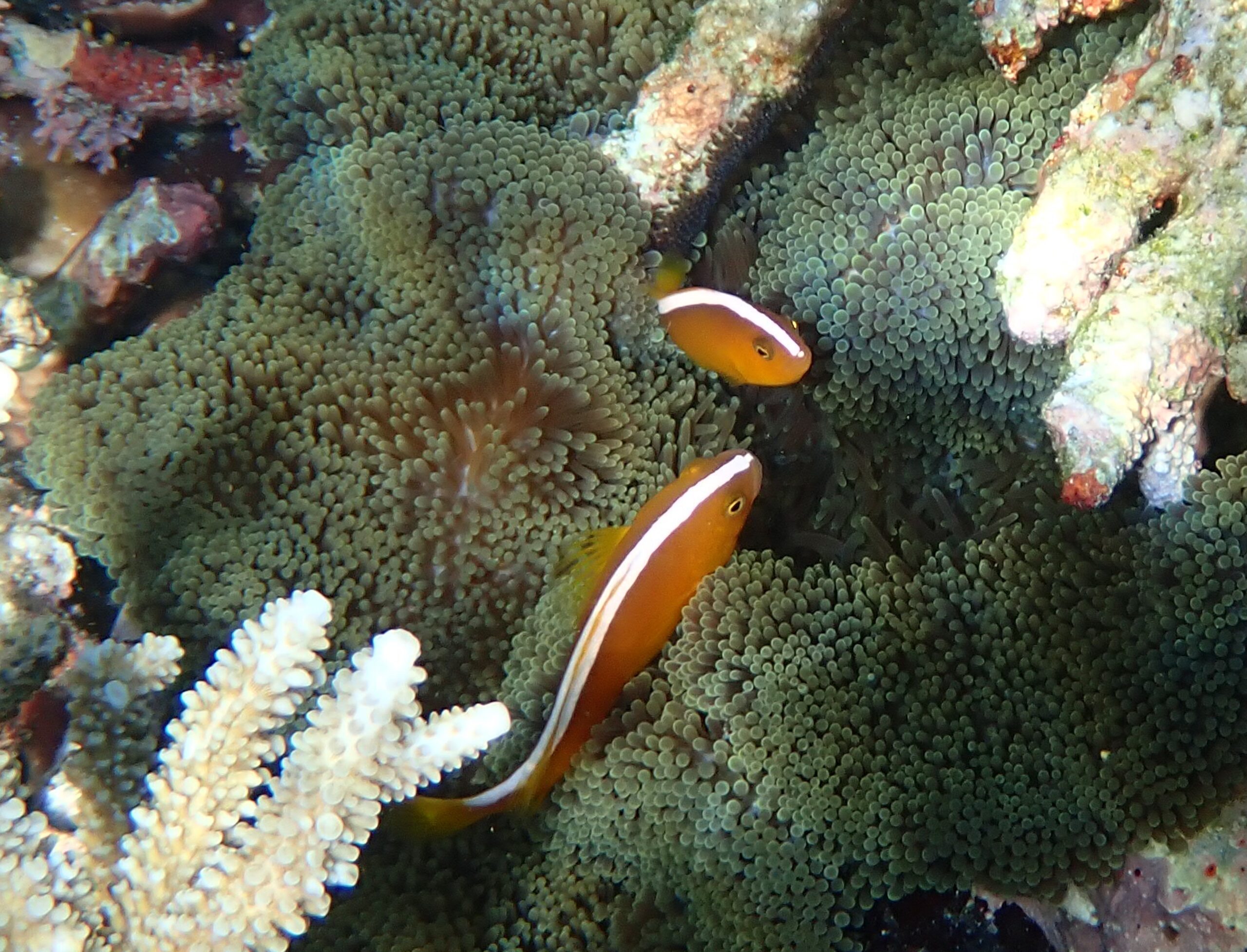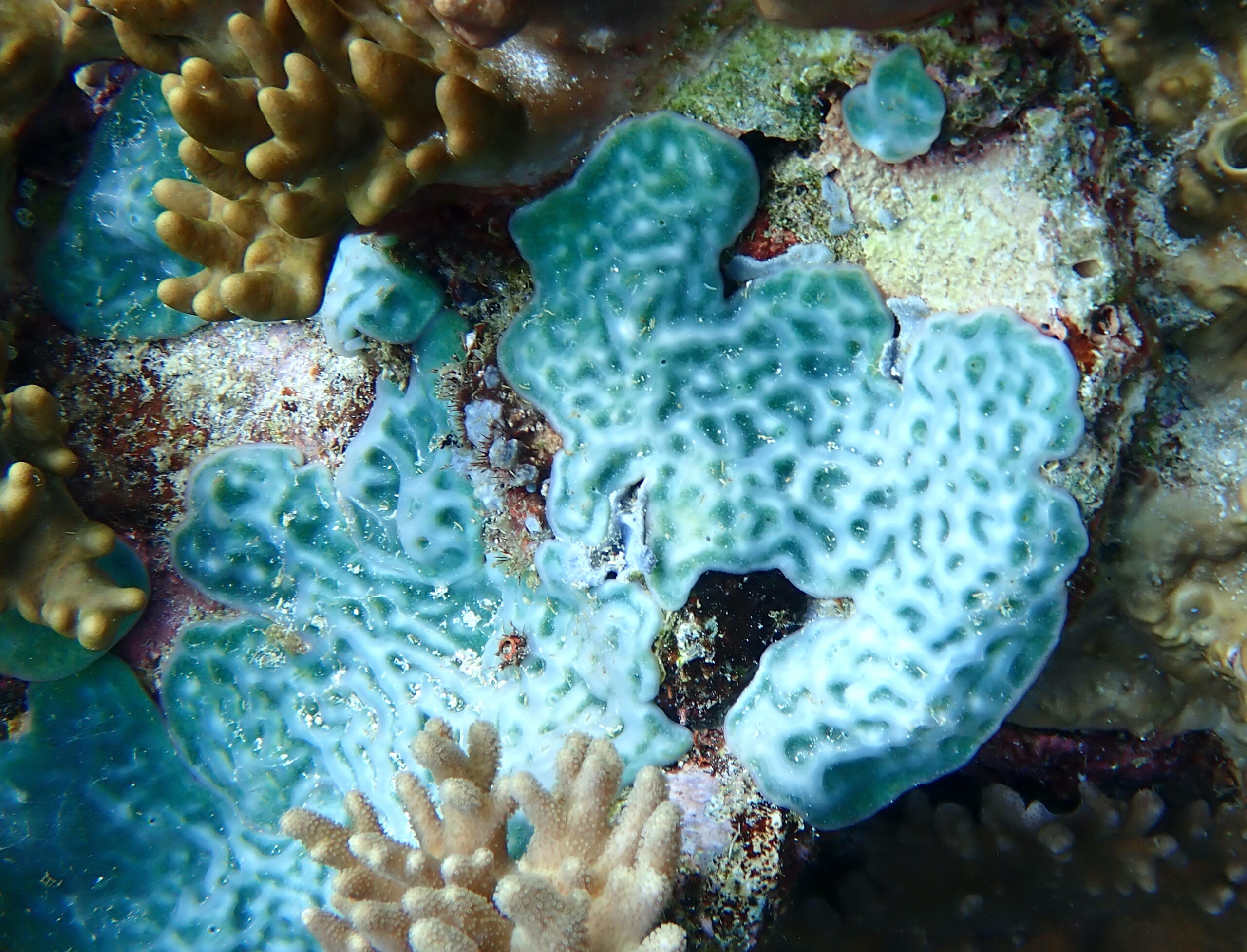 The coral habitats that can be observed while snorkelling at the resort include; extensive areas of branching Acropora, large boulder Porites and patches of Montipora/Echinopora spp. Several patches of the Octocoral, Heliopora (Blue Coral) may also be found in the North Lagoon. Areas in the shallow waters comprise silty sands, often with associated seagrasses, which attract the Hawksbill Turtle. It is possible to see small Seahorses, as well as one of the walking sharks, the Raja Epaulette Shark. The main channel comprises bedrock, soft coral and hard corals, with numerous Featherstars. This channel area also has the Jetty which has attracted a variety of colourful soft corals. An interesting feature in South Beach is a deep water Blue Hole, which is home to many large shoaling species. A few areas of degraded coral are evident, generally off the South Beach but these are being compensated for by new introductions of coral species on the banks of the Blue Hole.