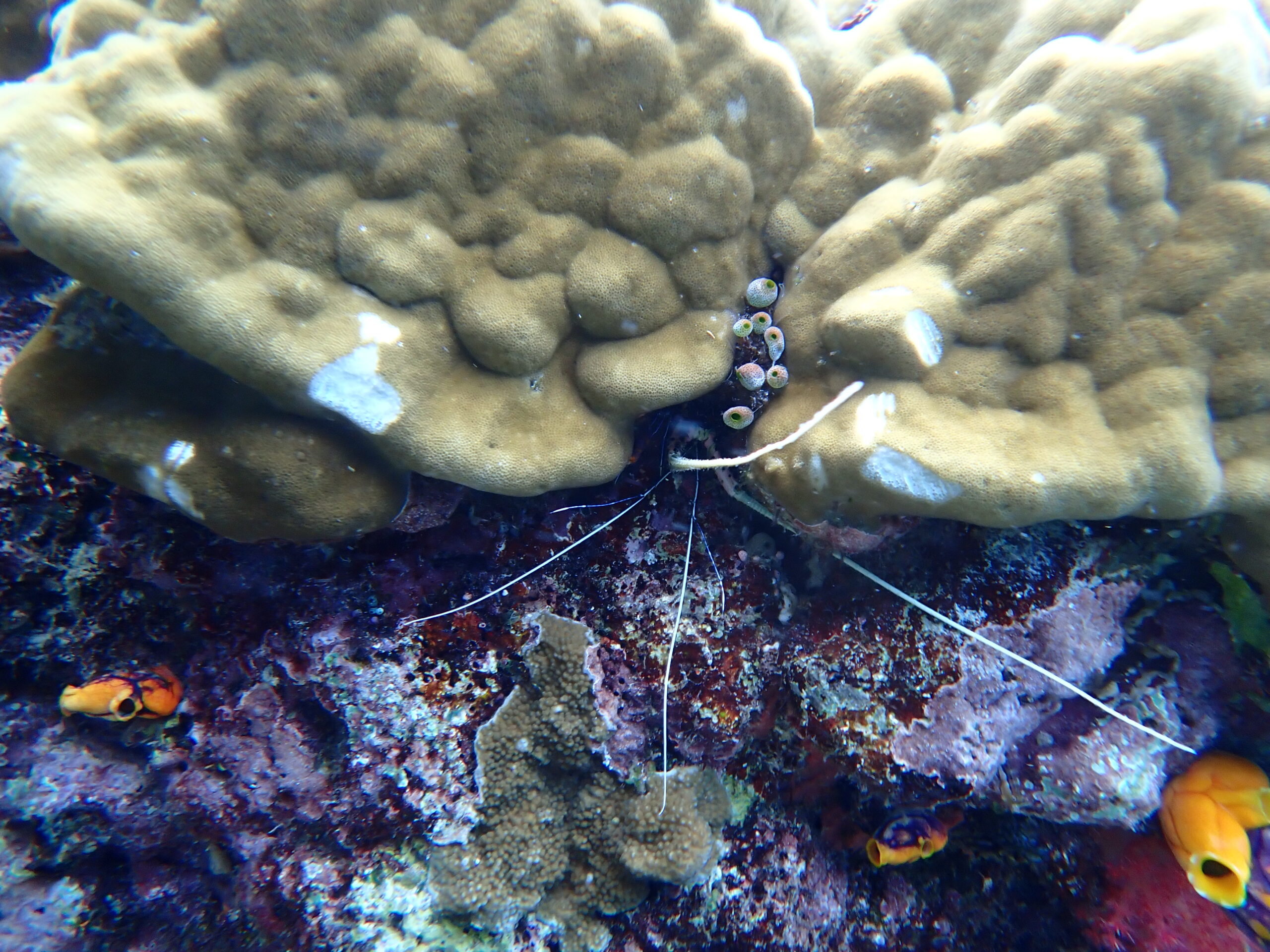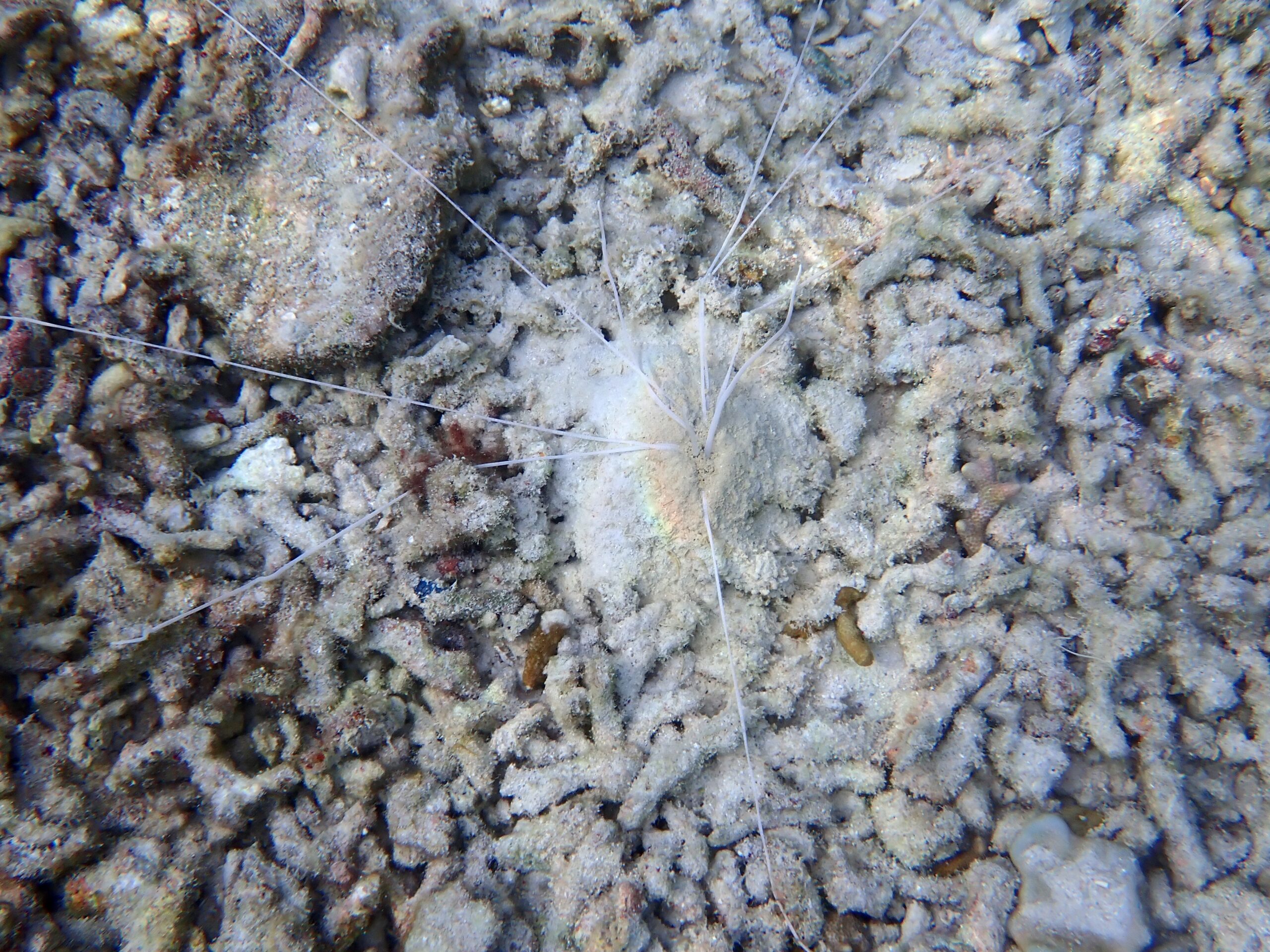 The South Beach has several habitats with both inshore sands and some exceptional coral growths (Echinopora spp) to the southwestern edge, around the Rotunda. This area also attracts many fish species that would normally be found hidden in corals; the shade from the Rotunda enabling them to be seen in the open. These included several Soldierfish species.