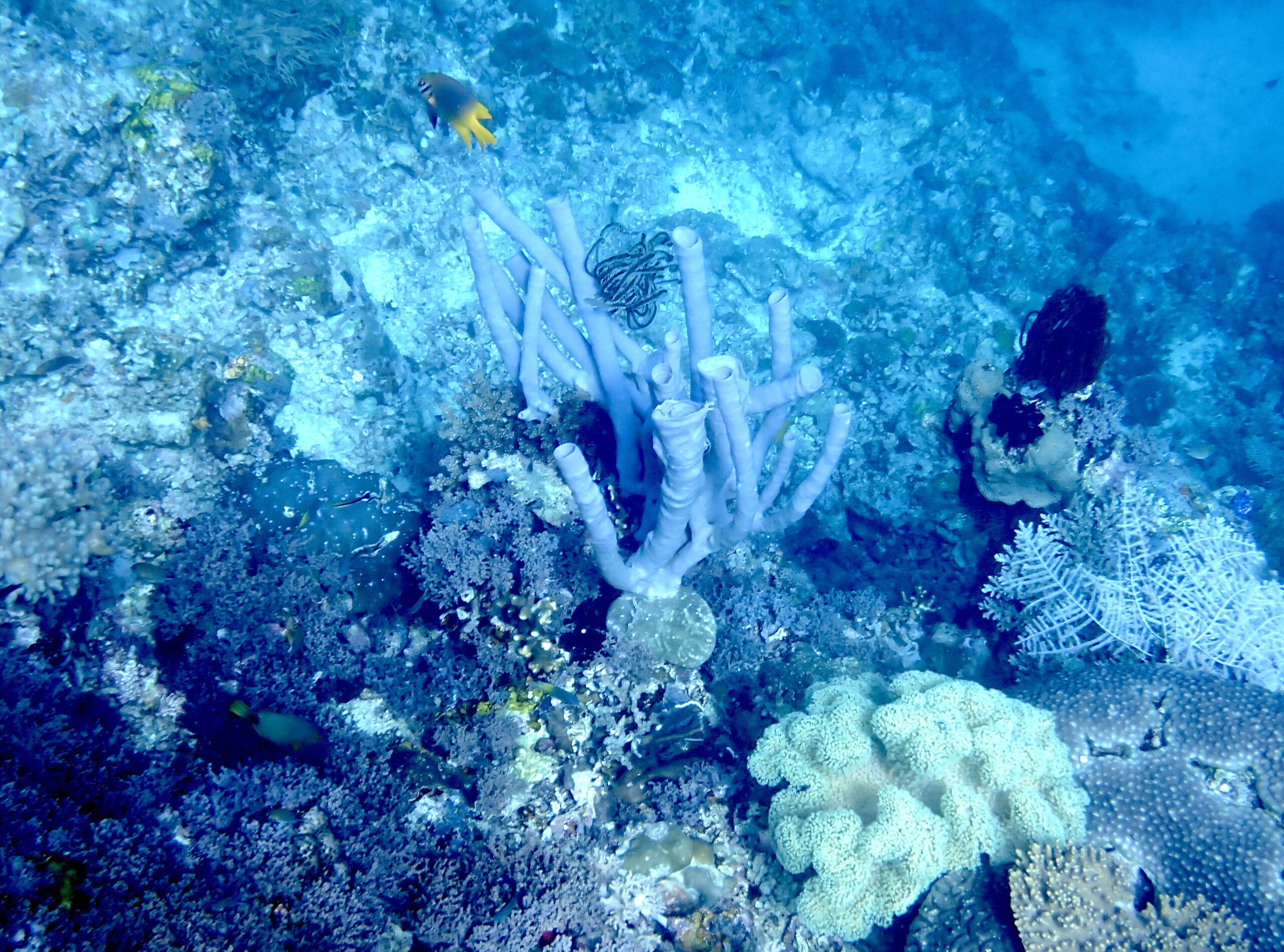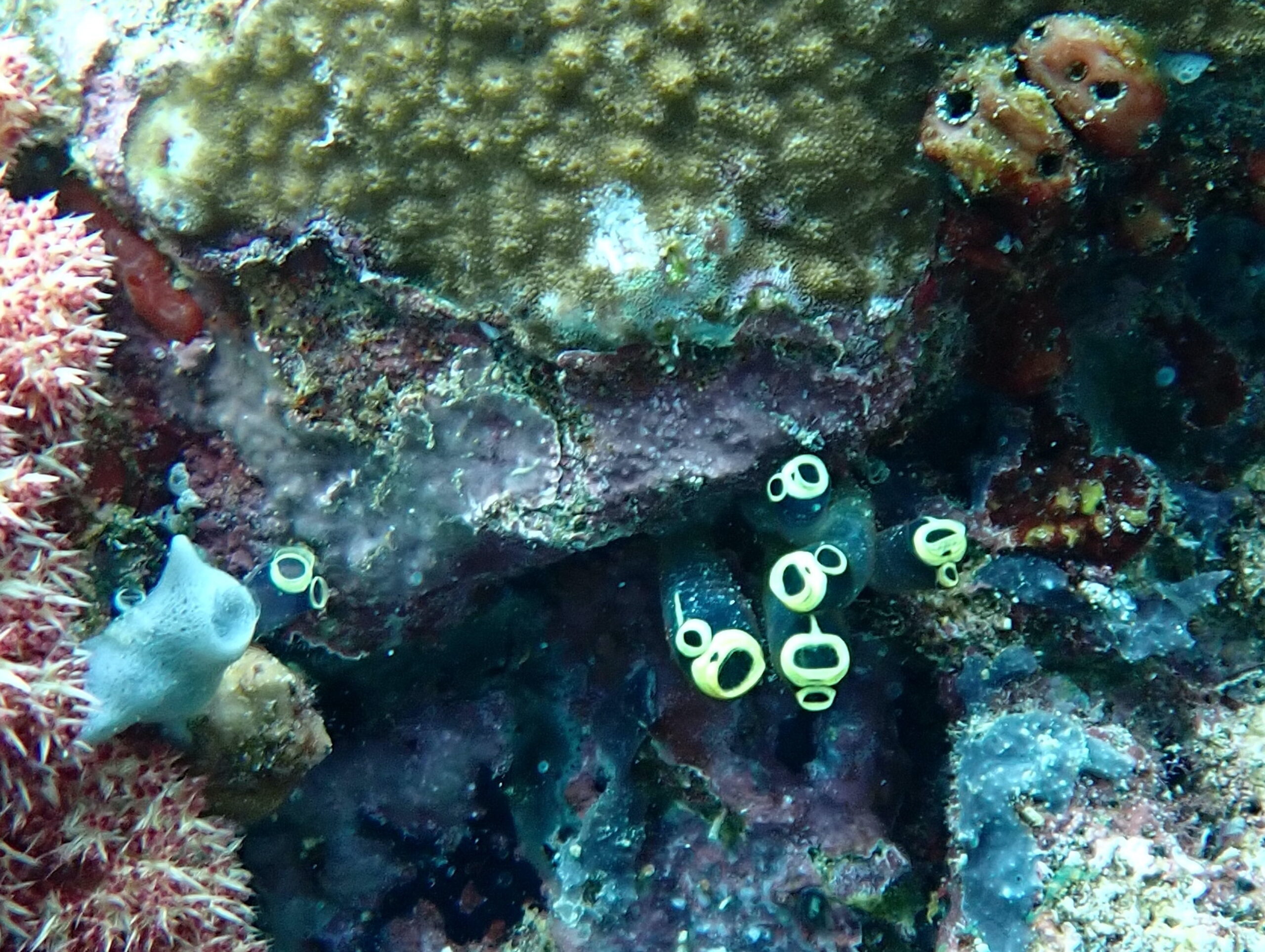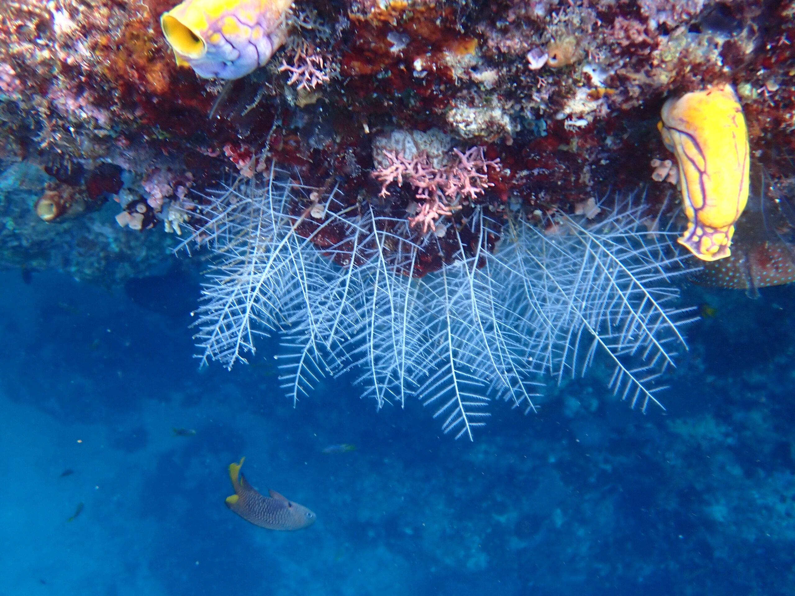 The reef along the channel that comprises Area 2, slopes steeply into deep water, with a variety of branching and boulder hard coral species, as well as numerous soft corals and colourful sea squirts. A great variety of colourful fish can be observed, particularly towards the southern end of the channel.