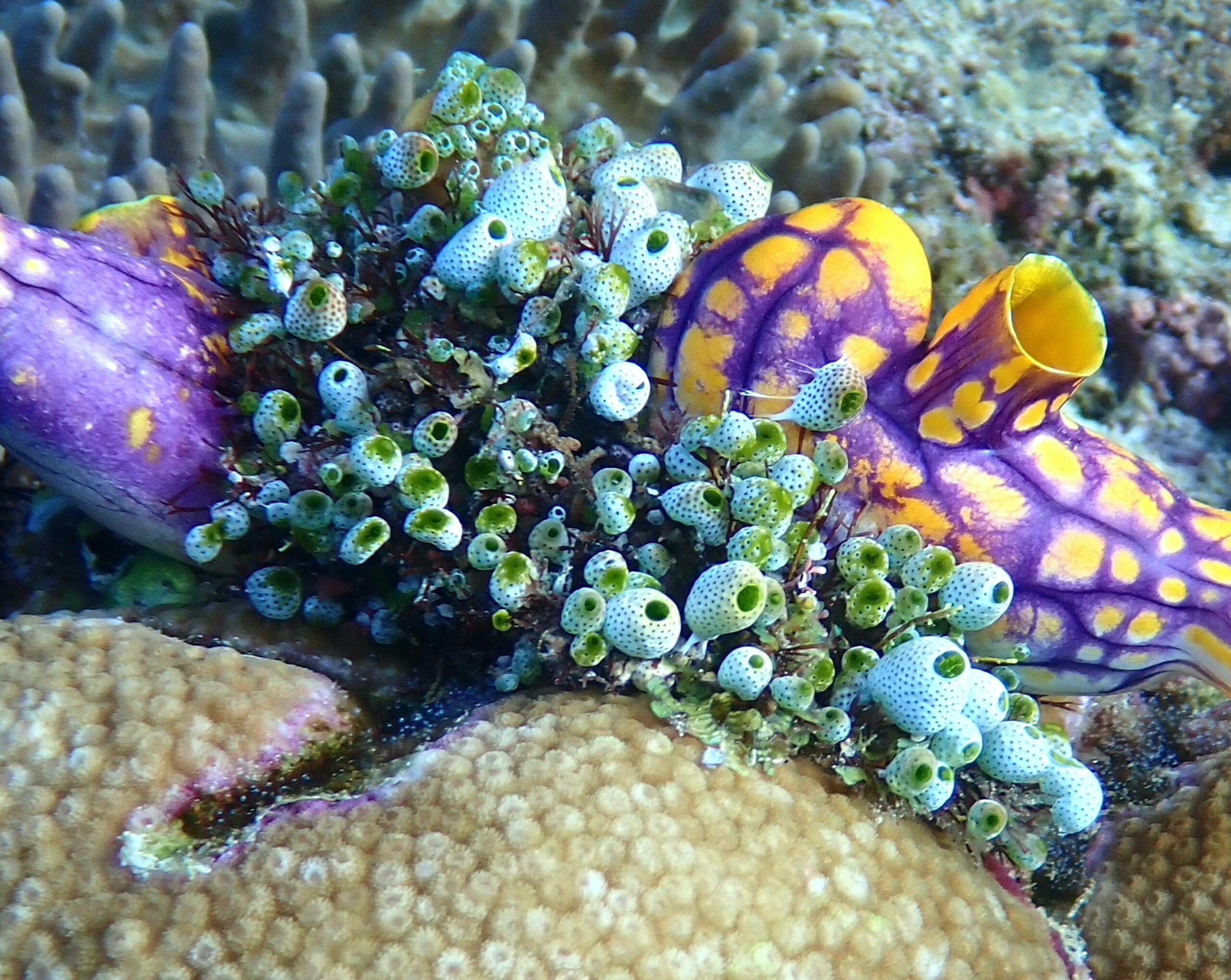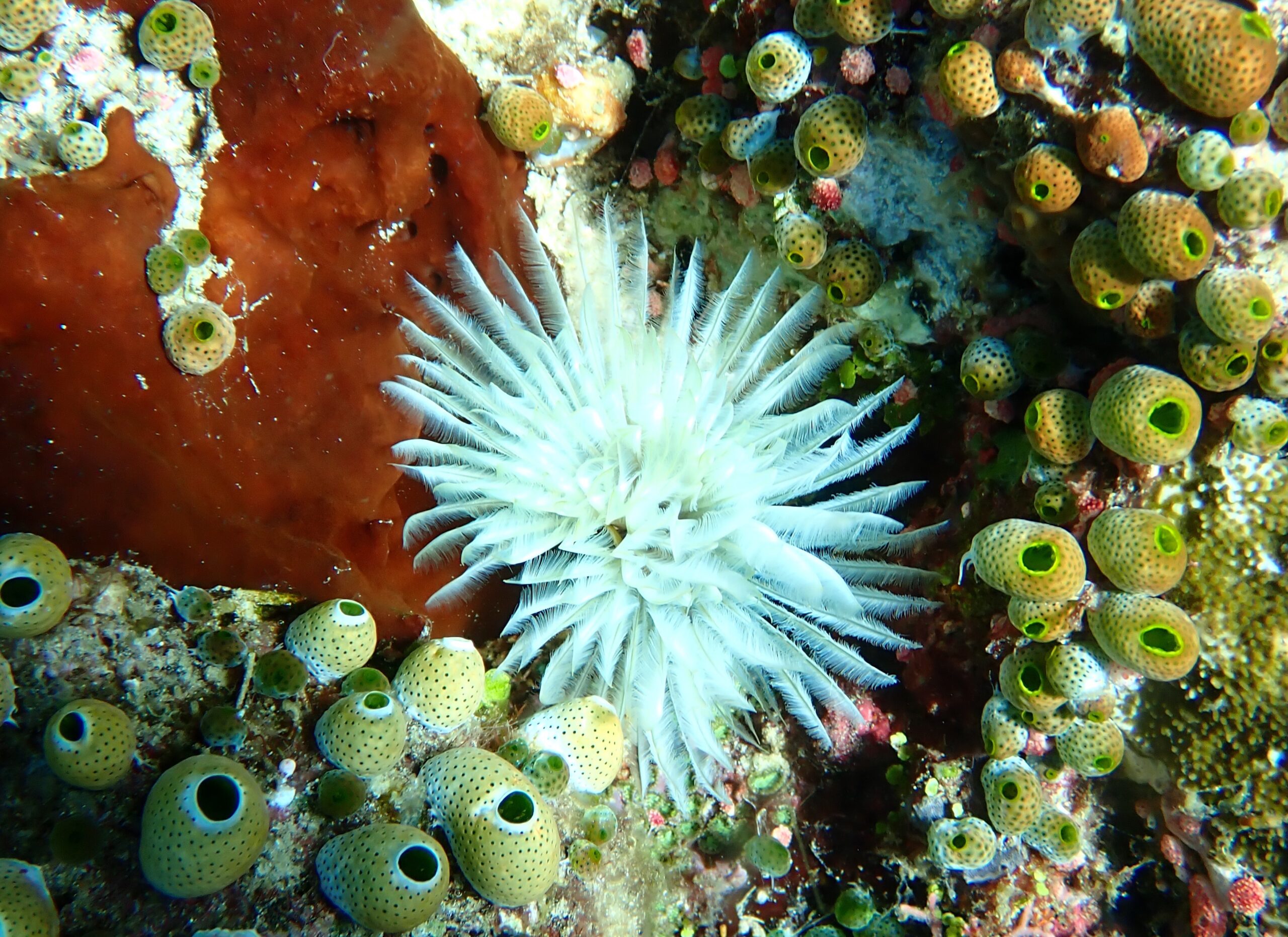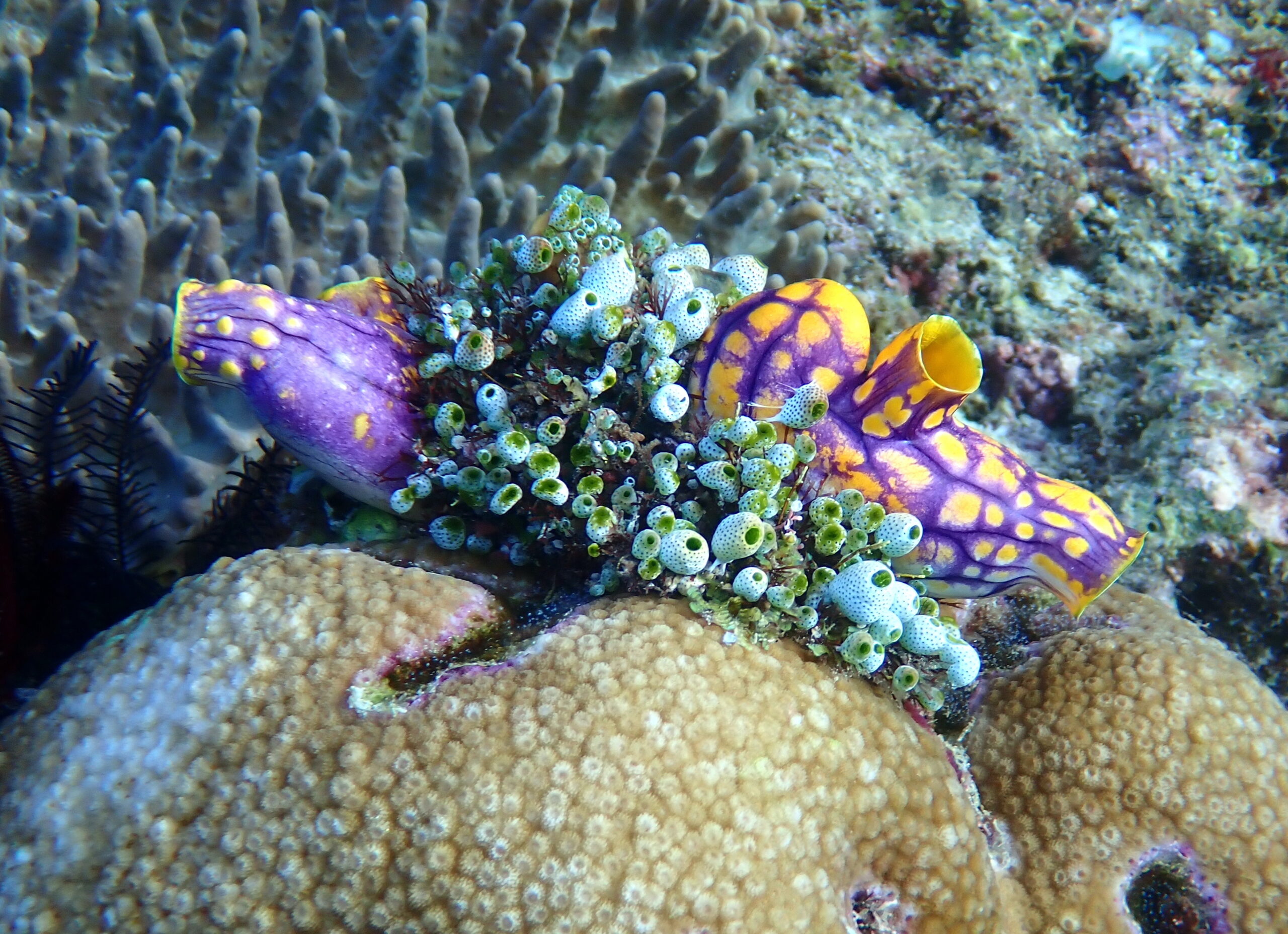 The reef along the channel that comprises Area 2, slopes steeply into deep water, with a variety of branching and boulder hard coral species, as well as numerous soft corals and colourful sea squirts. A great variety of colourful fish can be observed, particularly towards the southern end of the channel.
