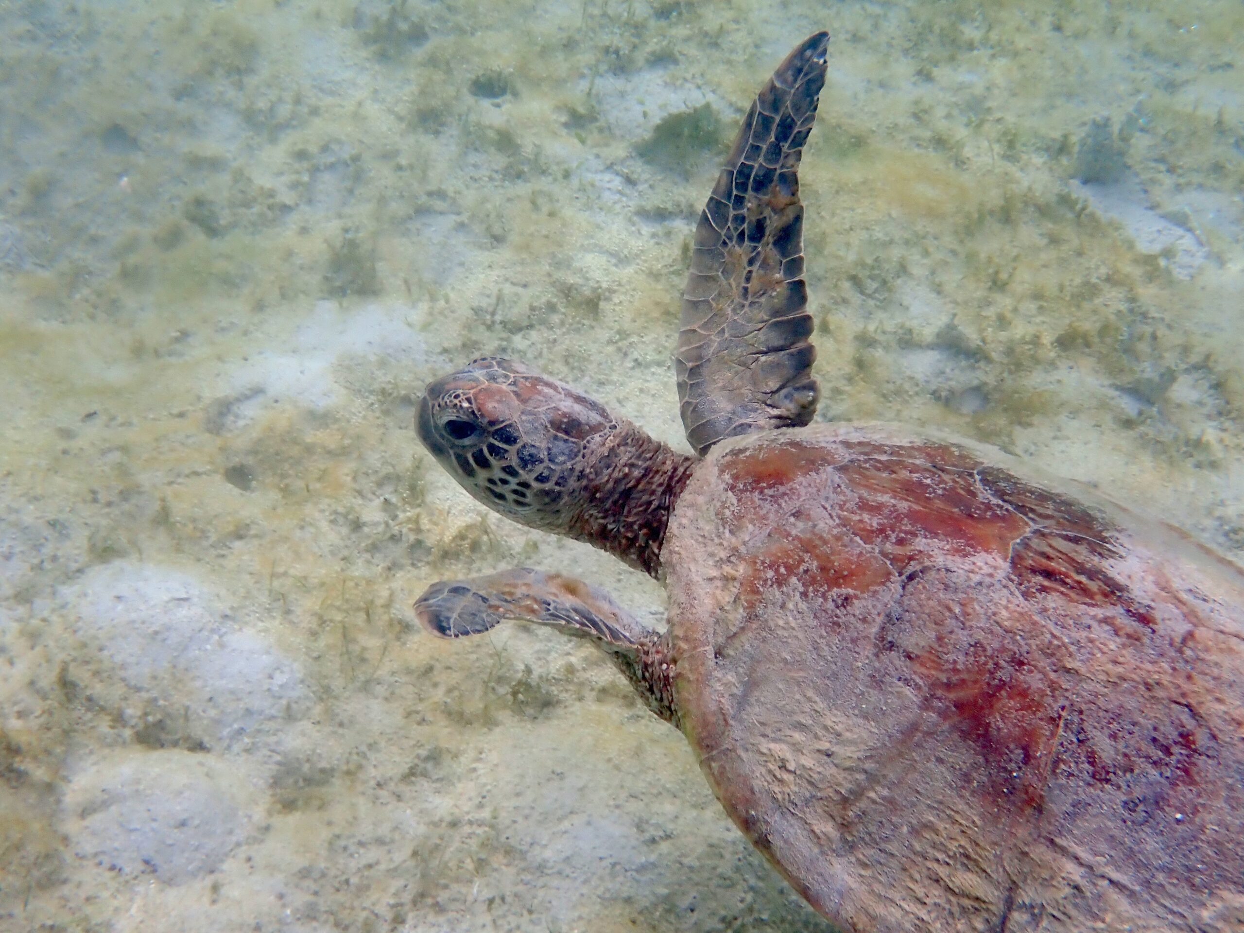Don’t forget that entering and exiting the beautiful South Beach area from shore, can be very difficult at low water, due to the extensive nature of the shallow water corals.